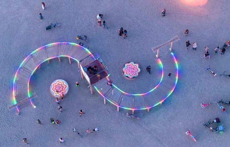 My first generation immigrant dad was a civil engineer who worked on the new Oakland/SF bay bridge. His untimely death and my reflection of it, inspired my dream to build an architectural art installation of a rainbow bridge, that would highlight the mysterious impermanence of life.