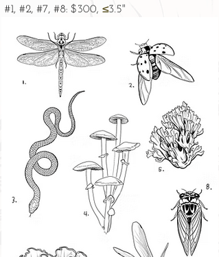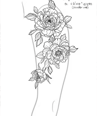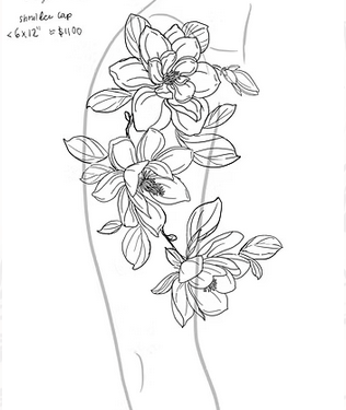 My drawings are bare bones sketches and do not include shading but will be done during tattoo session, please specify (on appt date in person) if you would like a line emphasis only session.