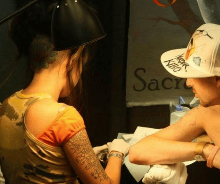 Tattooing at the Seattle Tattoo Expo 2008, with about 20 hours of tattooing on my body. I have about 86 hours of tattooing on my body today.